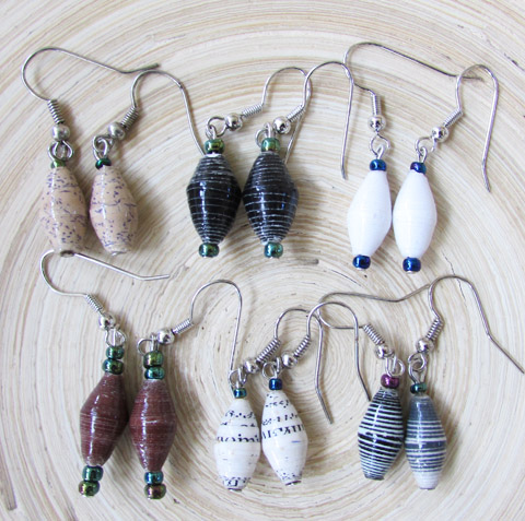 Our basic single bead earring. Each pair of earrings is unique. There may be slight color variations from those shown in the photo. Beads made by Ugandan women.